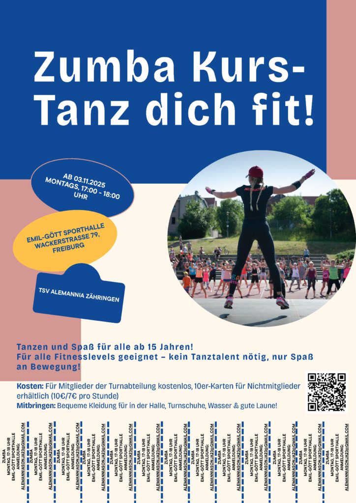 Nach den Herbstferien beginnt unser neuer Kurs Zumba mit Sophia ab 15 Jahren von 17-18 Uhr in der Emil-Gött Halle. Kategorien: Informationen